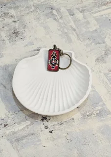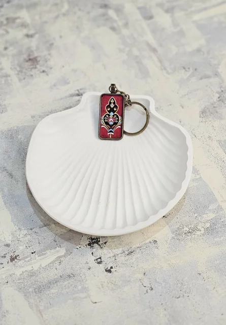 جاکلیدی از جنس برنز با ابعاد۲×۴ سانتی متر که طراحی دستی با رنگ های مخصوص روی آن انجام شده است.