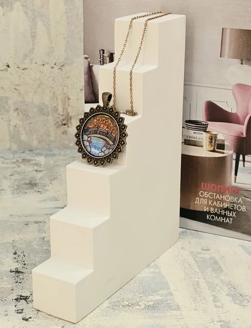 گردن آویزی از جنس برنز با ابعاد۴×۴سانتی متر که طراحی دستی با رنگ های مخصوص روی آن انجام شده است.