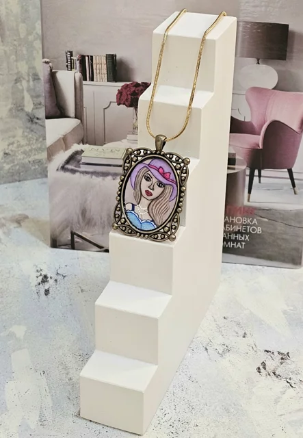 گردن آویزمیناکاری(طرح دختری با کلاه بنفش رنگ)