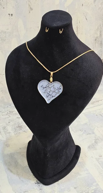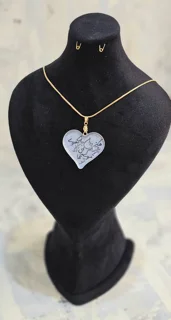 گردن آویزی از جنس برنج آبکاری شده با ابعاد۳×۳/۷ سانتی متر که طراحی دستی با رنگ های مخصوص روی آن انجام شده است.طول زنجیر ۶۰ سانتی متر است.