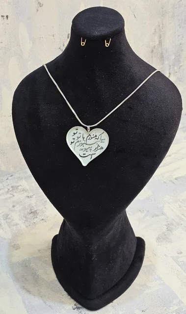 گردن آویز کالیگرافی (طرح هرگز وداع جانم نکردی/ای آنکه تنها تو پشیمانم نکردی)