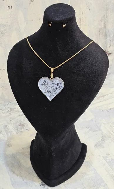 گردن آویزکالیگرافی میناکاری شده(هرلحظه که تسلیمم در کارگه تقدیر/آرام تر از آهو، بی باک تر از شیرم)