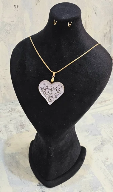 گردن آویزکالیگرافی با شعر(از تو گفتم،ازتو خواندم،از شب بالا بلند گیسوانت)
