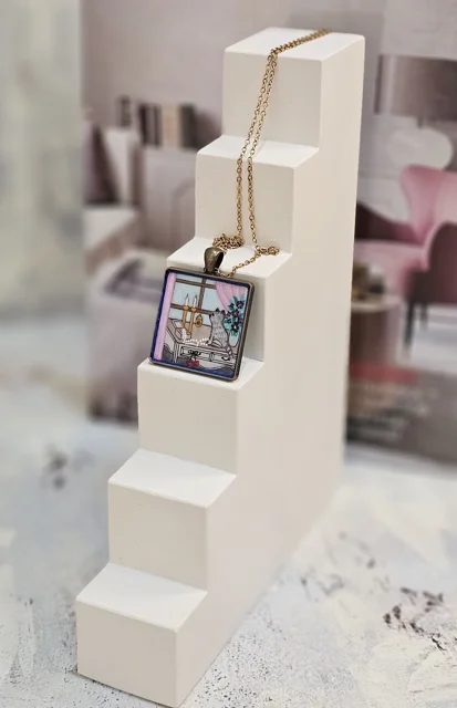 گردن آویز میناکاری(طرح دختری رو به پنجره)
